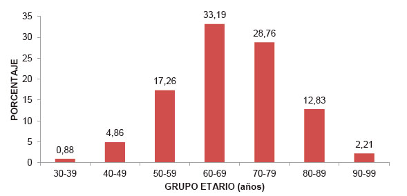 En 580 pacientes hipertensos con edad igual o mayor a 50 años se reporta una prevalencia de HVI del 56,40 % 26. En nuestro estudio la incidencia en ese mismo grupo fue de 94,26 %, y en personas de 60 a más años fue de 77,00 %, lo que demuestra que los hipertensos que viven en altura pertenecen mayoritariamente a una población adulta mayor.