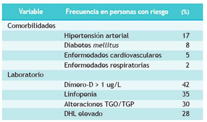Tabla 1 Frecuencia de comorbilidades en pacientes con neumonía por COVID-19 con riesgo de mal pronóstico y riesgo de mortalidad