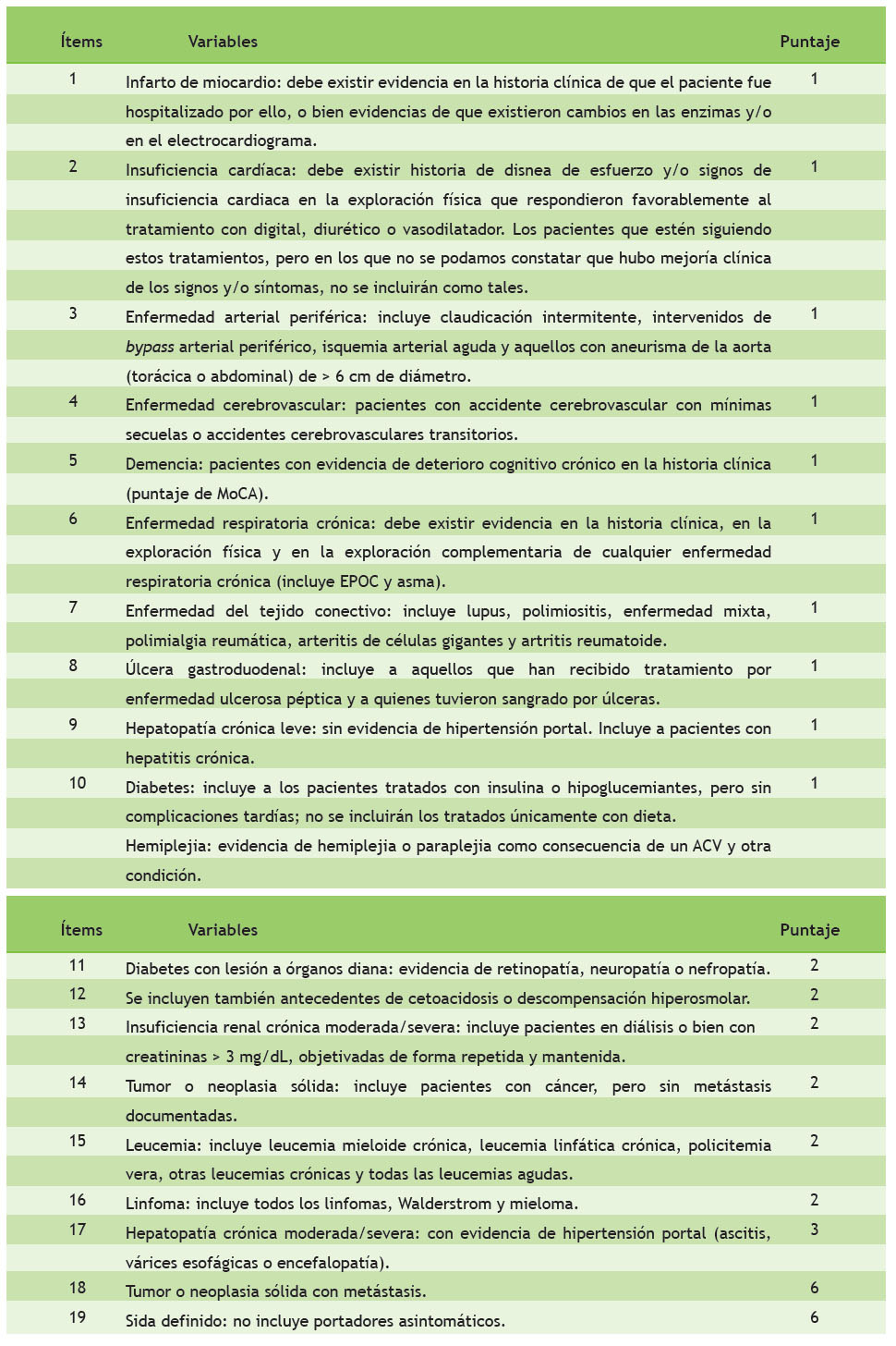 Tabla 2 Índice de Charlson