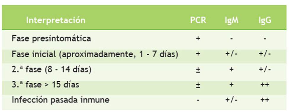 De acuerdo a esta interpretación, en este estudio solo están incluidos los pacientes con IgM positiva con o sin IgG positiva, ya que este hallazgo no significa pasado inmune.