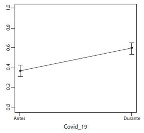 Figura 1 Intervalos de confianza de 95 % para los efectos relativos del programa educativo "Libres de COVID-19" sobre las habilidades sociales preventivas del adolescente atendido en el Hospital Provincial Tayabamba, 2020