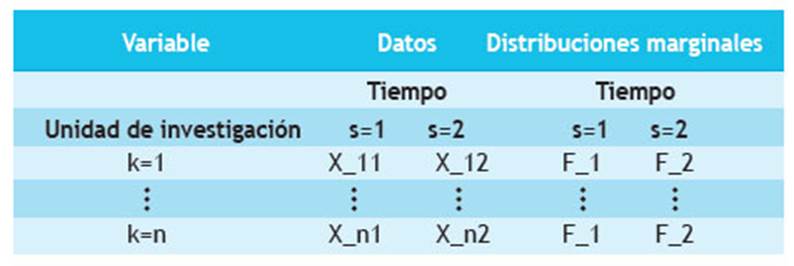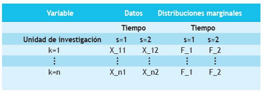 Para estimar el efecto de la aplicación del programa educativo con un pretest de ingreso y un postest, se emplearon las metodologías descritas por Brunner et al. y sus aplicaciones prácticas en el análisis de datos longitudinales de experimentos que estudian estudian una sola muestra de sujetos en dos ocasiones en el tiempo (pre y postest) 13. En este caso, el experimento consiste en evaluar la respuesta de las unidades de investigación sometidas a una condición en particular (programa educativo) en dos ocasiones (pretest y postest; t = 2); el mismo se constituye en el diseño experimental más simple en el contexto de los datos longitudinales. Aquí, el modelo estadístico para t = 2 períodos considera que los vectores aleatorios observados X_k = (X_k1,X_k2 )´,k = 1,…,n, son independientes, y las X_ks tienen la función de distribución marginal F_s,s = 1,2.