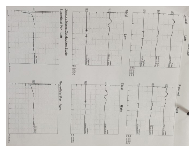 Figura 2 Electromiografía: signos compatibles con polineuropatía sensitivo-motora axonal en miembros inferiores