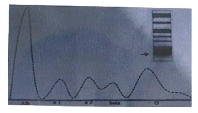 Figura 4 Densitometría del patrón electroforético con evidencia de un aumento de las gammaglobulinas (2,1 g/dl)
