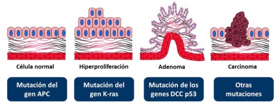 Las alteraciones moleculares patológicas del cáncer colorrectal han sido ampliamente estudiadas; no obstante, todavía se continúan estudiando para comprender mejor sus mecanismos e interacciones. El cáncer colorrectal puede clasificarse en función a sus características moleculares en dos tipos principales: A) tumores con inestabilidad cromosómica (CIN) y estabilidad microsatélite (MSS), no hipermutados, los cuales comprenden el 85 % de todos los adenocarcinomas del CCR y están asociados a la pérdida del gen supresor de tumores APC, como evento temprano en la formación de adenomas; B) tumores con inestabilidad de microsatélites o hipermutados (MSI), generalmente encontrados en el colon derecho y asociados con el fenotipo metilador de las islas CpG (CIMP) 12.