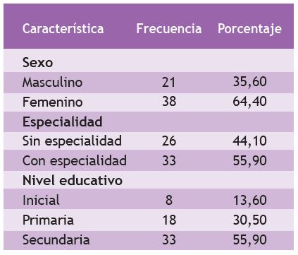 Tabla 1 Características de los docentes de la institución educativa "Alberto Pallete" en el distrito de Máncora