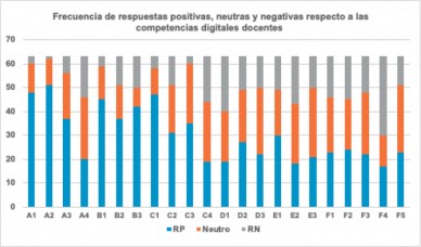 Entre los elementos que se puede destacar, se observa que los resultados obtenidos indican que la percepción de los docentes frente a la competencia digital, específicamente en los ítems F4: Enseño al alumnado cómo comportarse de manera segura y responsable en línea, D1: Uso estrategias de evaluación digital para monitorizar el progreso de los estudiantes y E2: Uso tecnologías digitales para ofrecer al alumnado oportunidades de aprendizaje personalizadas ― competencias que están directamente relacionadas con el rol docente―, es negativa.