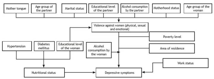 As a strength, a sample size representative of the Peruvian population was used. In addition, anthropometric measurements were taken by trained personnel using objective methods-i.e., such measurements were not based on self-report (16). As already mentioned, an instrument (PHQ-9) with optimal psychometric properties was used to detect the severity of DS in the Peruvian population. In addition, the incorporation of the violence variable is innovative compared to previous studies, since violence is a prevalent problem in Peru: 55.7 % of women aged 15-49 years have suffered some type of violence, whether psychological, physical or sexual. This directly impacts other variables, exerting a confounding effect that hinders the correct visualization of the effect of one variable on another. The lack of adjustment of the variable in the analysis may lead to erroneous estimates and false associations. Finally, this study addressed two conditions with a high impact on public health in the country: depression and excess weight.