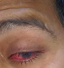 El caso índice, al que llamaremos paciente 1, es un hombre de 32 años, procedente de Lima, ocupación conserje, heterosexual, sin antecedentes patológicos ni familiares. El día 27 de julio del 2022 presentó una pápula ―"granito"― debajo del ojo izquierdo, la cual fue eclosionada manualmente por su esposa. Al día siguiente, presentó fiebre por un día y, posteriormente, dolor de cabeza en la región parietofrontal, con irradiación a la región ocular del mismo lado, de moderada intensidad, y dolor ocular izquierdo. Luego, se añadió prurito ocular, fotofobia, visión borrosa, lagrimeo, congestión ocular edematosa (Figura 1). En los días siguientes, aparecieron cinco lesiones pruriginosas tipo vesiculares no dolorosas, compatibles con infección de viruela símica, en diferentes zonas del cuerpo (dos en la mano derecha, una en el antebrazo derecho, una en la región malar izquierda, una en los genitales). Como tratamiento, recibe dicloxacilina y clorfenamina, prescritas en el establecimiento de salud. Tras ello, las molestias oftálmicas persistieron, por lo que el paciente decidió aislarse voluntariamente en su domicilio sin monitoreo médico. El diagnóstico realizado fue clínico, puesto que reusó realizarse prueba de confirmación molecular.