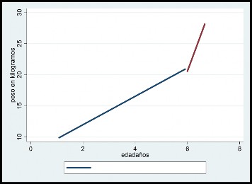 Figura 1 Análisis de regresión lineal de edad y peso promedio anual de los preescolares que acudieron a los Cendi del municipio