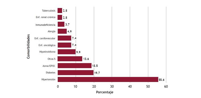 § Otras: artritis reumatoide, celiaquía, colesterinemia, depresión, fibrilación auricular, lupus, melanoma, migraña, osteoporosis. Nota: las categorías de comorbilidades no son excluyentes.