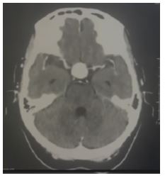 Clinical presentation: The patient was admitted with a one-week history of fainting, anorexia, profuse sweating, and vomiting. She was hospitalized in the department of internal medicine, where somnolence, hypoactivity and episodes of moderate-intensity headache were evidenced.